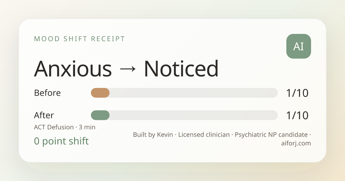 Built by Kevin ยท Licensed clinician ยท Psychiatric NP candidate ยท aiforj.com